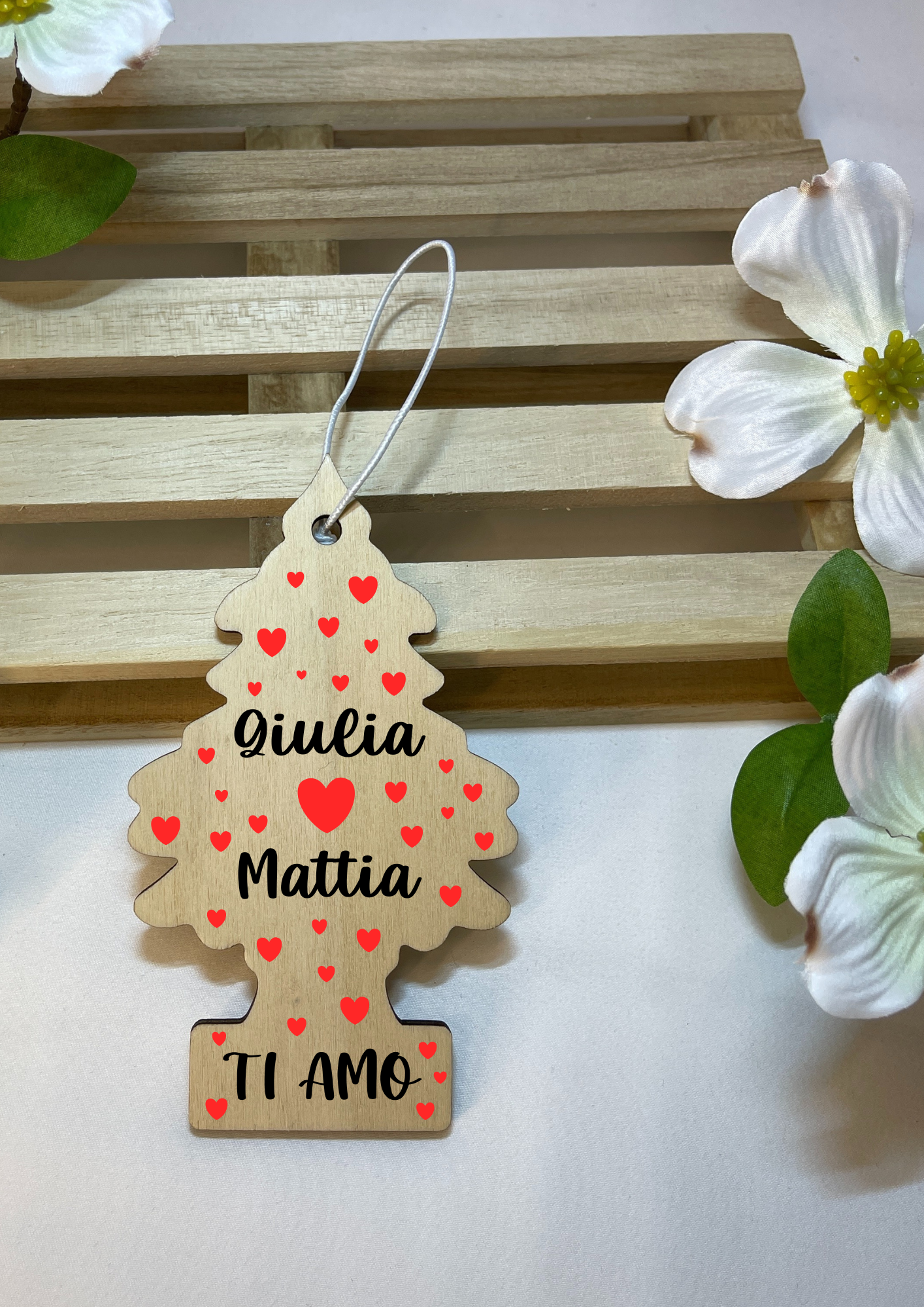 Ogni alberello ha una dedica speciale, rendendolo un dono unico da custodire o appendere in macchina.