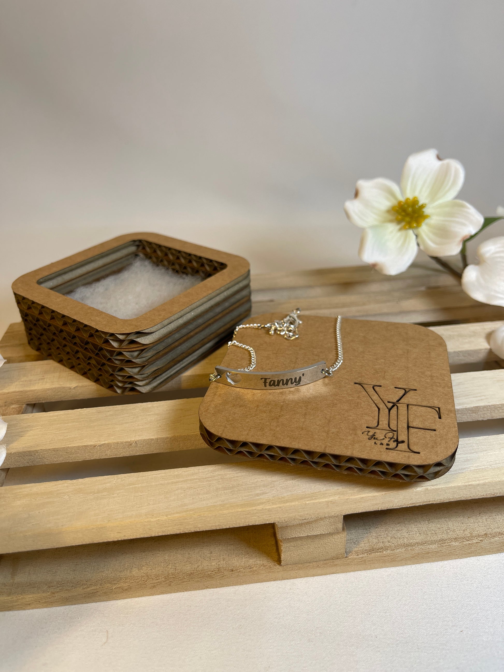 Il nostro bracciale con catenella e targhetta in metallo è un accessorio elegante e versatile, perfetto per portare sempre con sé un pensiero speciale.