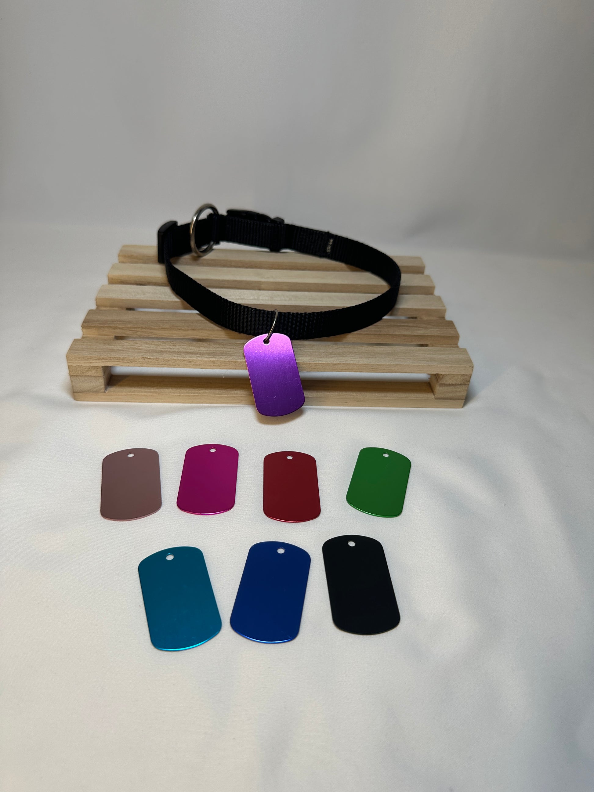 Disponibili in forma rettangolare e in tantissimi colori brillanti, sono personalizzabili con il nome del tuo amico a 4 zampe e un numero di telefono.