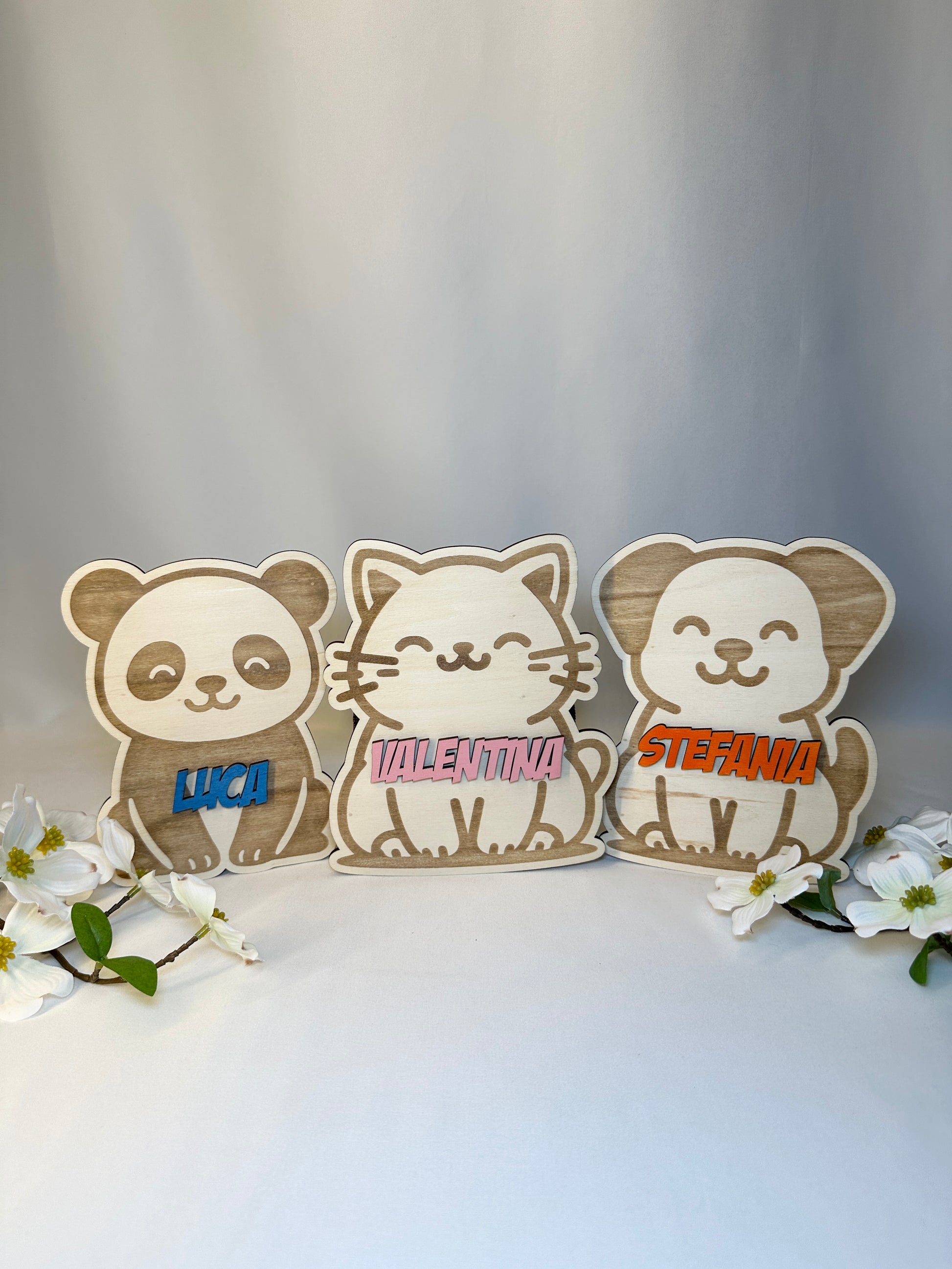 Davanti al salvadanaio troverai la sagoma di un animaletto o di una forma a scelta, mentre il nome, realizzato in rilievo e colorato, dà un tocco unico e allegro.