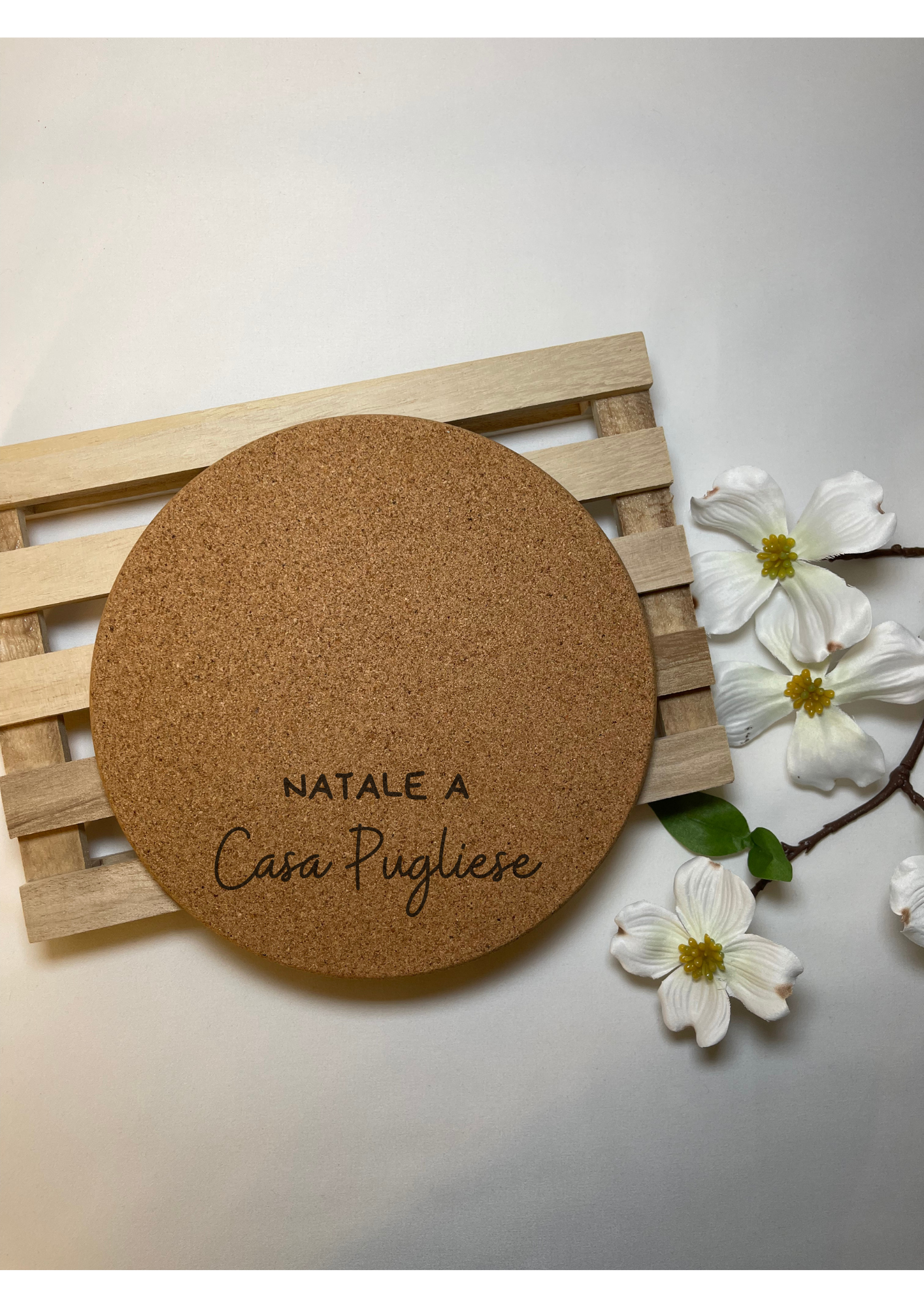 Rendi speciale ogni momento in cucina con il nostro sottopentola in sughero inciso e personalizzato a tema natalizio.