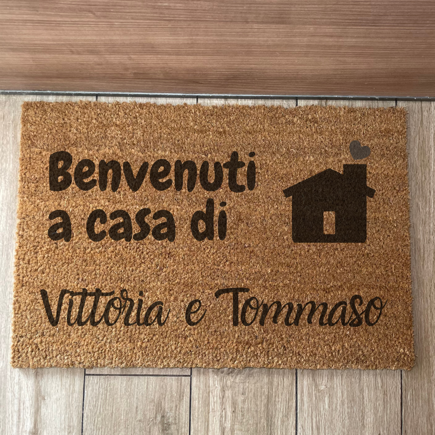 Lo zerbino personalizzato con la scritta Benvenuti a casa di... e i nomi dei componenti della famiglia è il modo perfetto per dare il benvenuto a chi arriva.